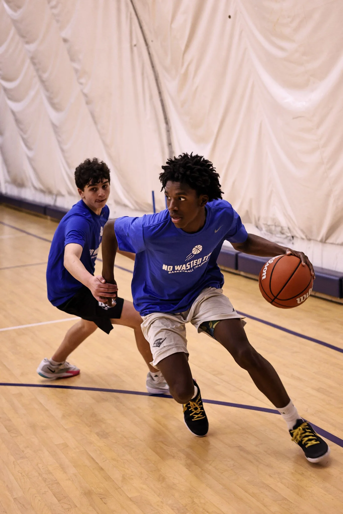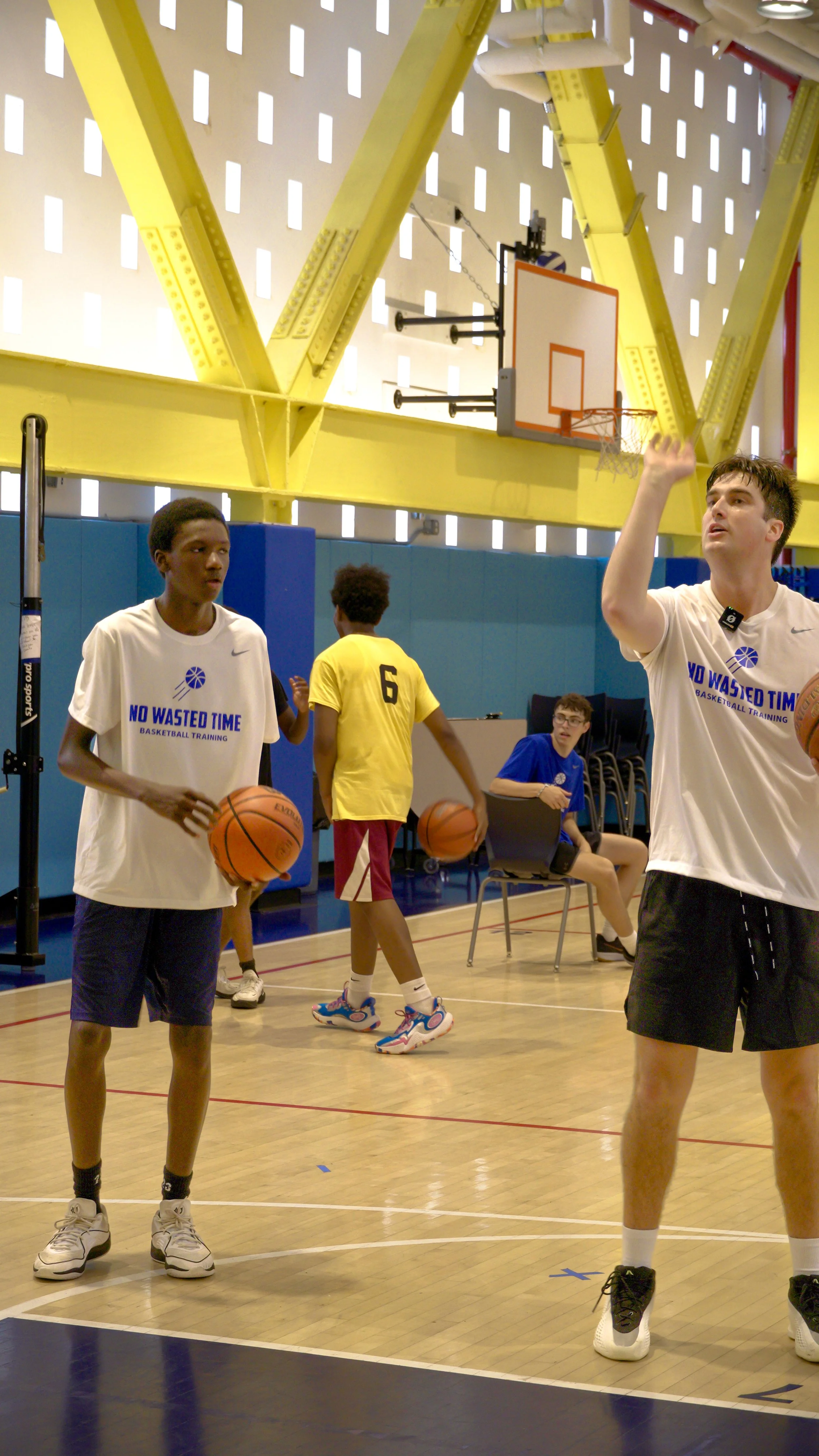 High-energy group workouts split by age/skill level. Players experience live play, small-sided games, and weekly progressions. Focus on decision-making, basketball IQ, and game-readiness. Led by Nolan or elite coaches. Personalized feedback in every session.